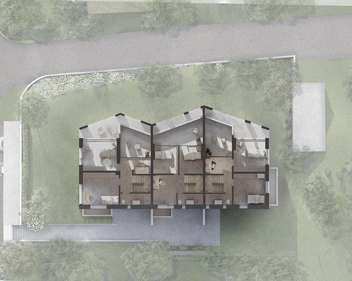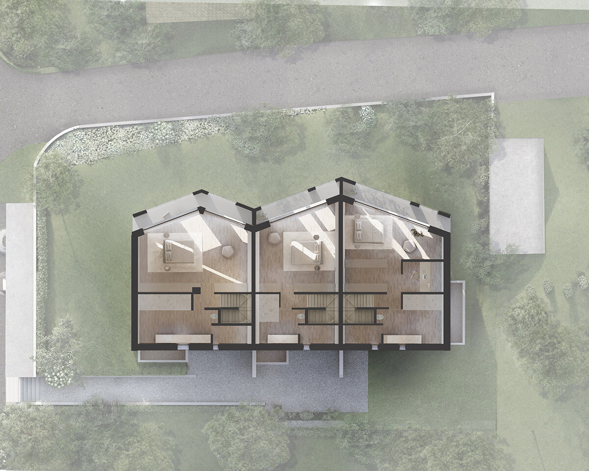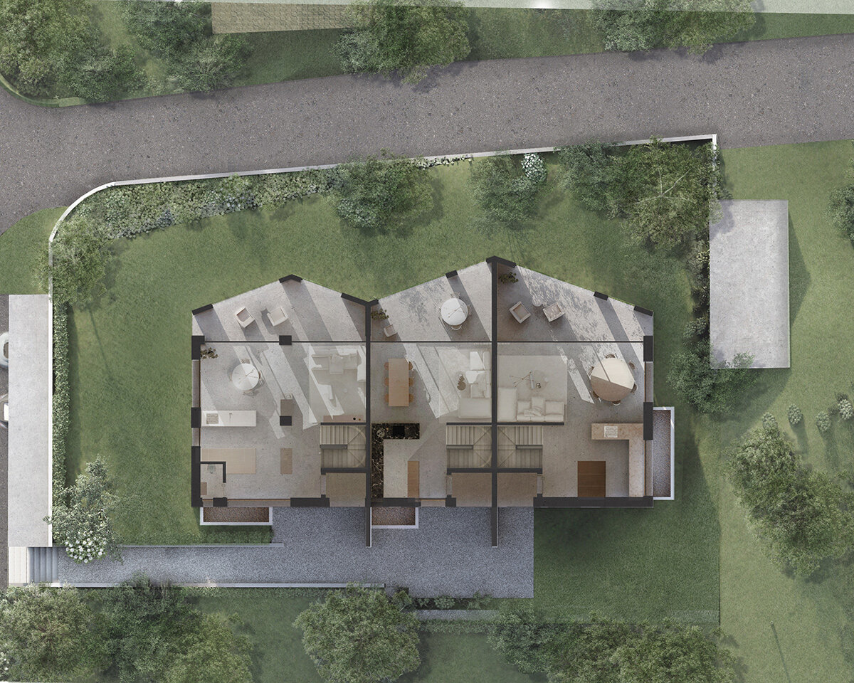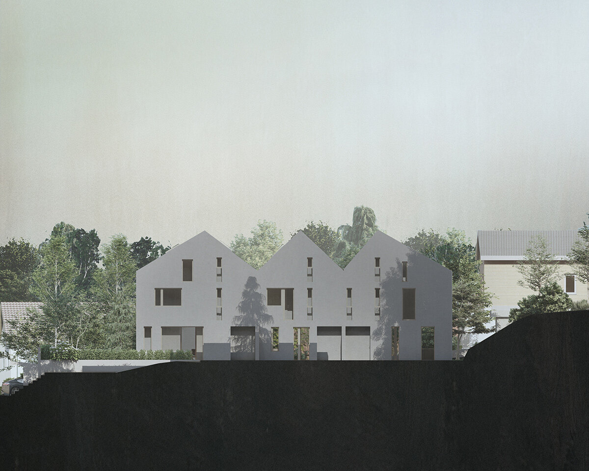 a protective south-facing wall shields the interior from excessive sunlight and provides privacy