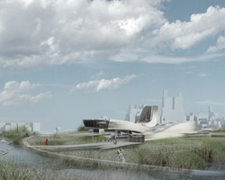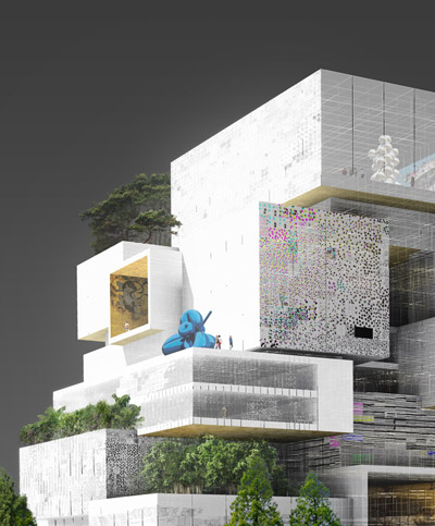 a continuation of the existing rock formations, the hotel is articulated as a series of stepped horizontal planes, courtyards, and gardens.