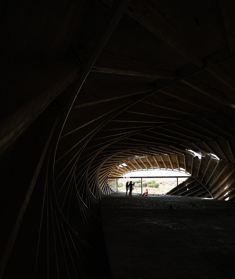 in the early 2000s, the seaside city of torrevieja in spain wanted to make itself more appealing to tourists. therefore, japanese architect toyo ito (find more here) was commissioned to design a relaxation park to channel the demand for mud baths that are traditionally taken in the salt flats along the lagoon. it was an ambitious building design shaped like a conch (‘la caracola’ in spanish) with five spirals, clad in plywood, resting on a concrete structure.