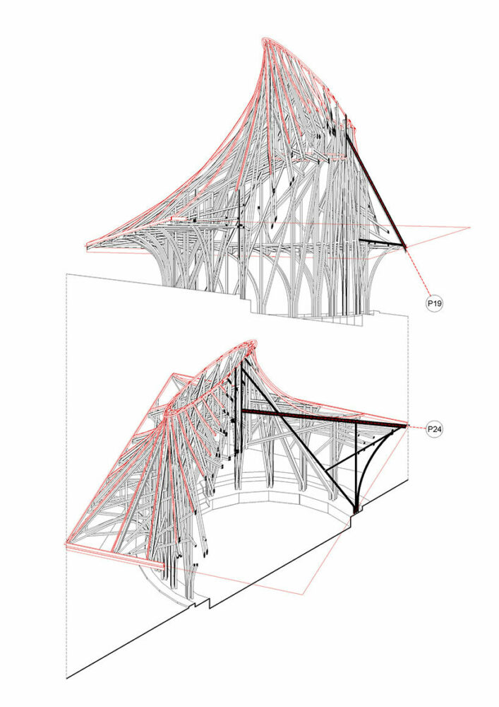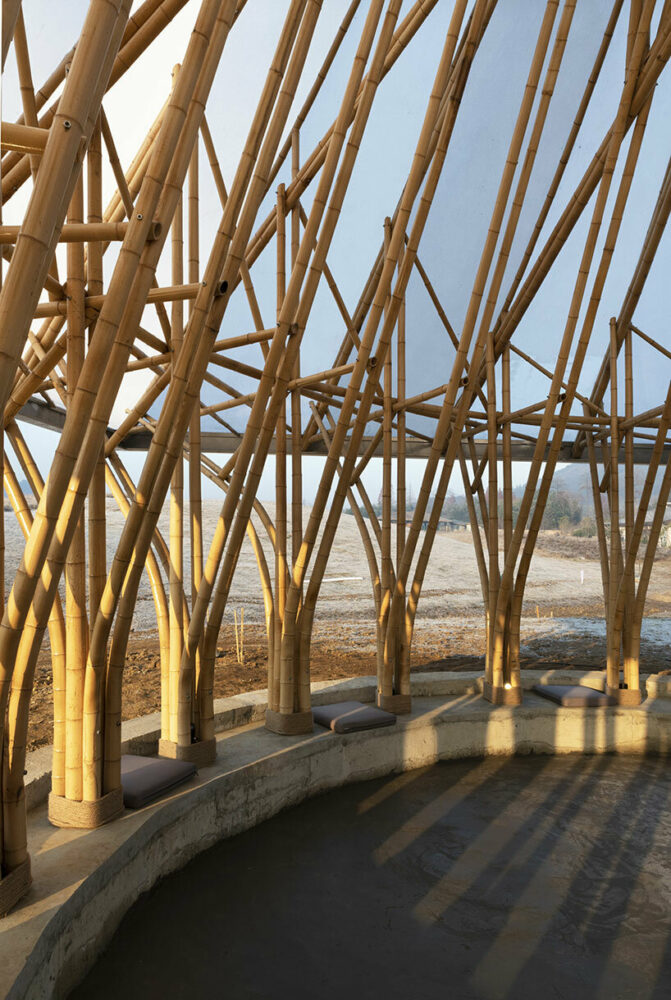 Such a meticulous process allows the architecture to intuitively evolve, as the forms are affected by the idiosyncratic nature of both the bamboo and the tools. The theater thus represents an approach to construction which aims to ‘elevate craft rather than supersede it, providing traditional craftspeople with the ability to realise complex new forms while maintaining a space for expression.’
