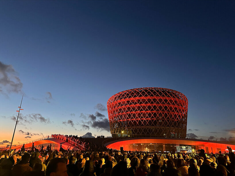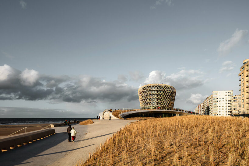 The event venue in Middelkerke, Belgium, known as SILT, was ceremoniously unveiled on Friday, March 22. Completed as a sculptural wood lattice landmark, the building takes over the Flemish coast by integrating into a new experiential landscape inspired by the former island of Testerep, characterized by dunes and channels. Such integration ensures coastal reinforcement, livability, and sustainability along the seascape. Dutch practices DELVA Landscape Architecture and ZJA led the design in collaboration with OZ and Bureau Bouwtechniek, alongside a team of experts forming the Nautilus Construction Team. At the heart of the landscape, the hotel tower stands as a new beacon by the sea. SILT also houses a casino, restaurant, multifunctional event space, and an underground parking garage. Read our previous coverage here