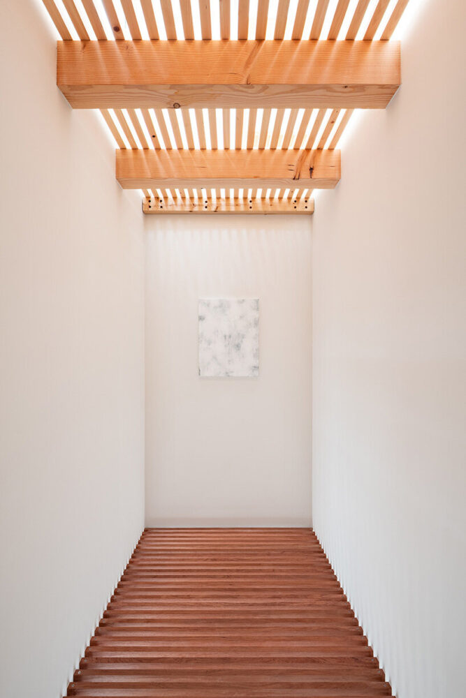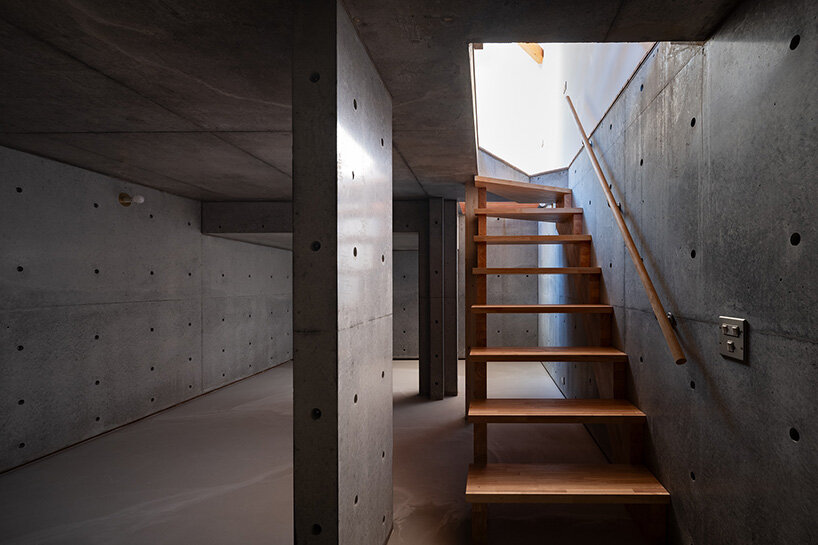the project sits like a ring placed over the terrain, with its funnel-like roof forming a shaded perimeter walkway and an introverted core.