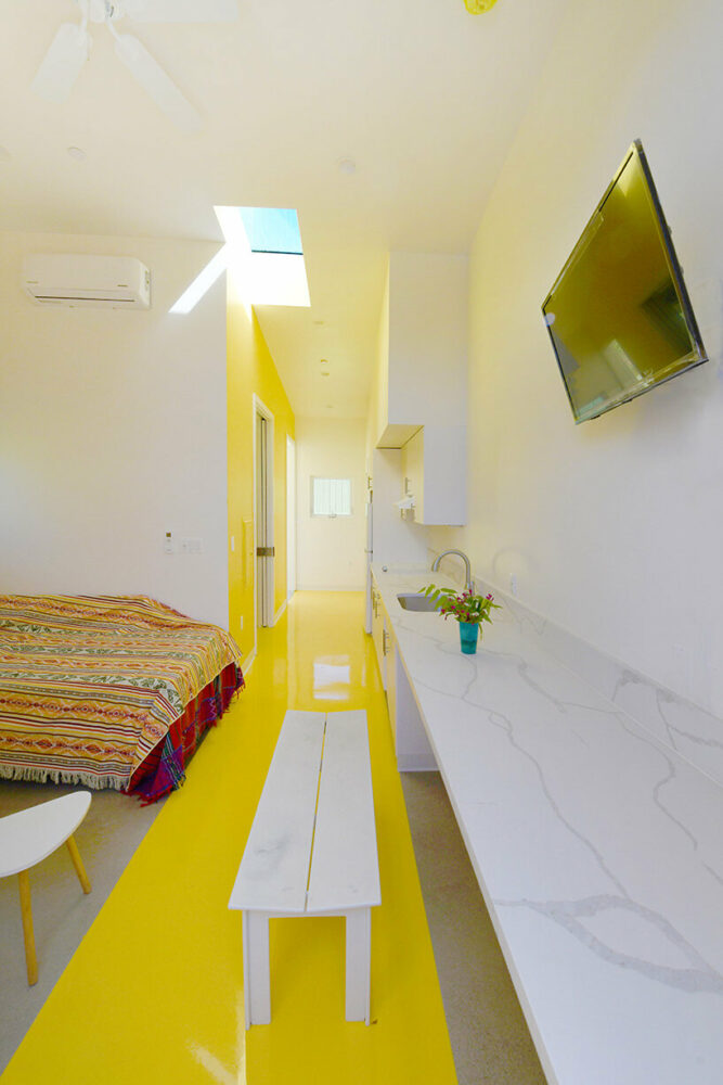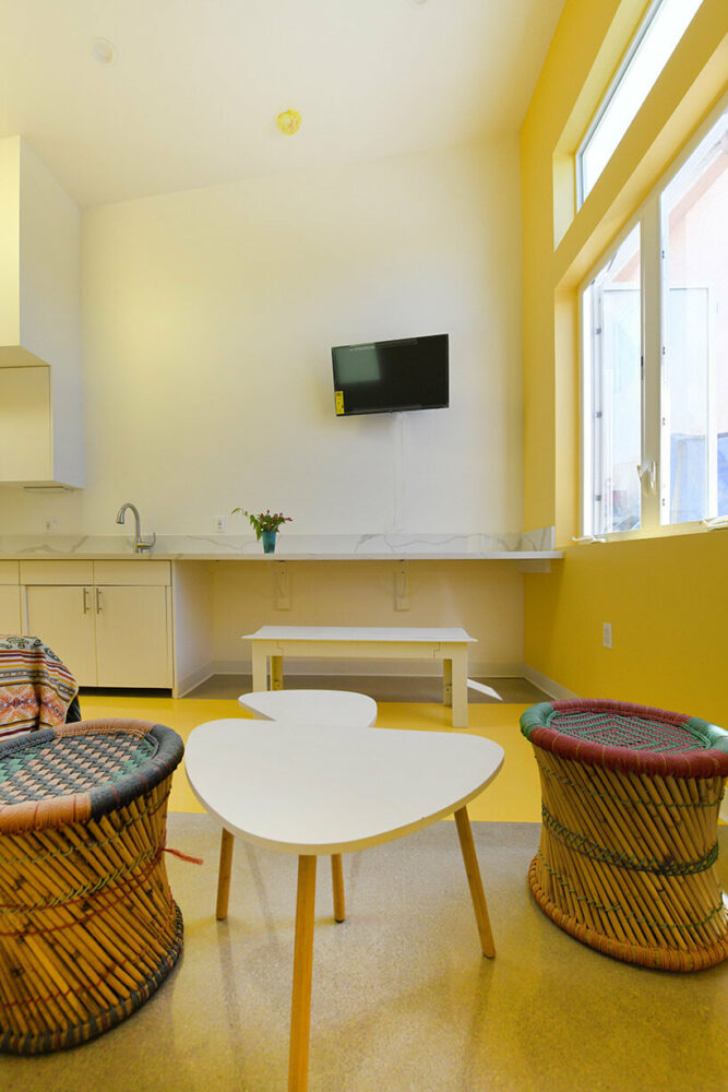 the units are mirrored and stacked back-to-back to foster a sense of community