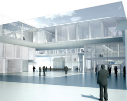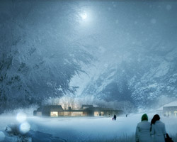 a continuation of the existing rock formations, the hotel is articulated as a series of stepped horizontal planes, courtyards, and gardens.