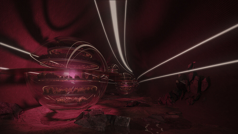 spherical greenhouses with vegetables that resemble small planets are responsible for agricultural purposes