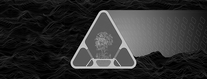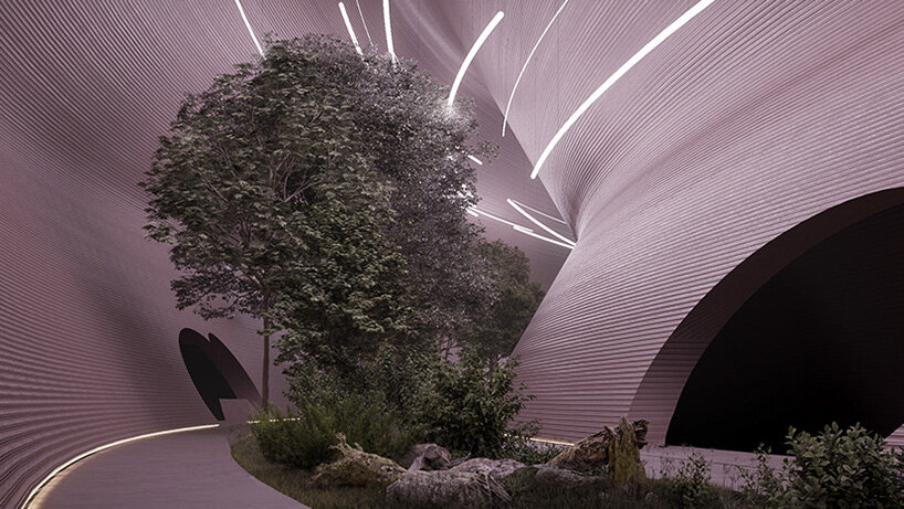 the entire hall is filled with vegetation, adding pops of ‘real-life’ to the interior, imitating the conditions on earth. meanwhile, the greenery will convert carbon dioxide and water into oxygen with the help of phyto-lighting. among the vital areas, the ring-shaped structure comprises a medical care center and an isolation ward, a research center that monitors the planets and the atmosphere, chemical and biological laboratories, a control area, and an administrative block. for safe entry and exit, there is a  gateway where one can remove or put on a suit for space travel.