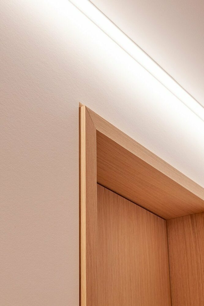 the interior of the luxurious apartments covers most of its surfaces with wood