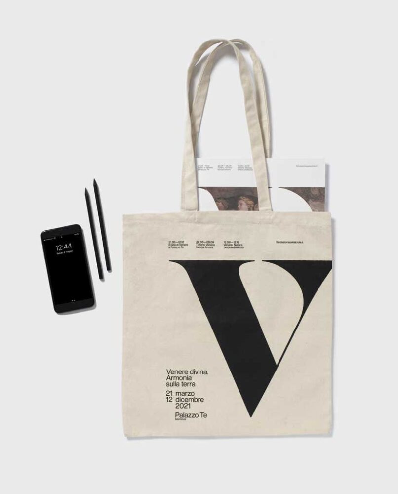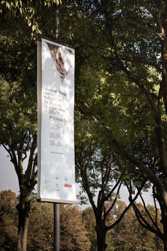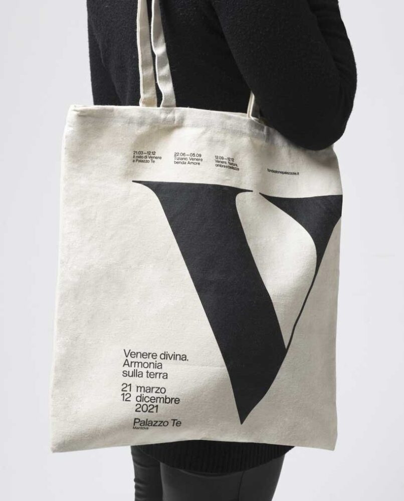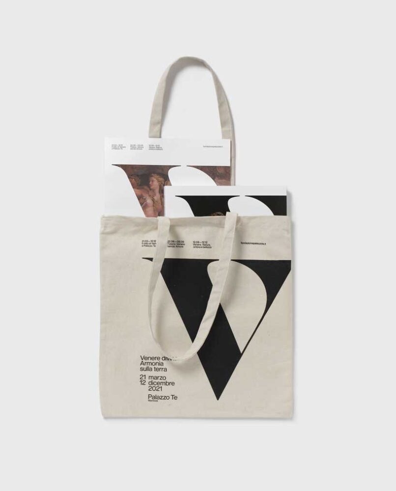 the V of venus was used to define all the visual communications, a majestic monogram characterized by a serif font that is both forceful and decisive and which combines sinuous curves with fragmented lines, conveying the sensual and complex aspects of her character that are brought to the fore in the third part of the exhibition. as one stage gives way to the next, so the works chosen to depict the figure of venus change to reflect this.