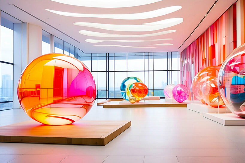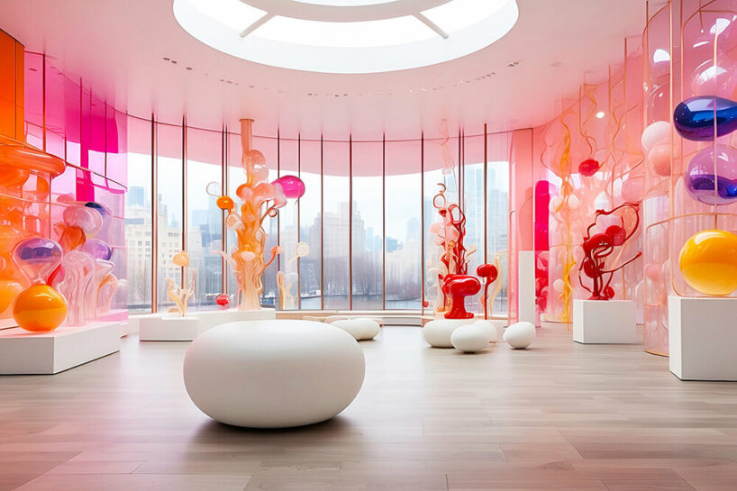 Italian practice Luca Curci Architects presents the Floating Glass Museum, a groundbreaking project that leverages the support of Artifical Intelligence to blur the boundaries between art and nature, transforming the open waters into a canvas for expression. Ephemeral looking and buzzing with glazing colors, the sculptural museum structure explores the future of our built environment amid sea level rises and climate change concerns. This project will be presented in several cities heavily affected by extreme fluctuations, like Dubai, New York, Hong Kong, Singapore, and Busan.