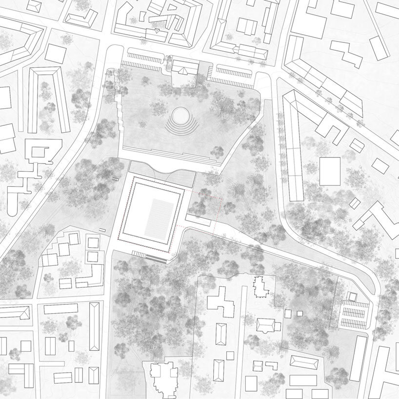 luca poian forms unveils its design for a new concert hall in vilnius, dubbed ‘tautos namai.’ the project is envisioned as an insertion into the natural setting of tauras hill park, which currently hosts a roman-style building with tall pillars atop the tauras hill pedestrian climb, a popular hike among locals and visitors of the city. the work of architecture is to be embedded into the hillside, opening outward through its entrance which celebrates the relationship with the local landscape, and allowing the experience of the park to seamlessly flow into the concert hall’s front-of-house experience.