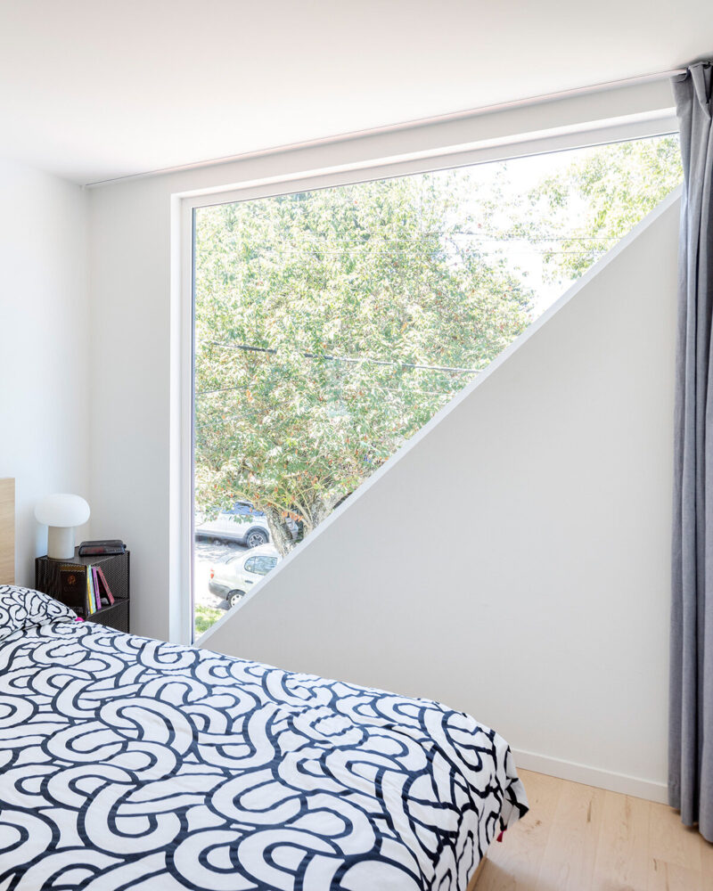 Fluevog House is a Net Zero building, with performance criteria embedded from the outset of the design process. MA+HG shaped the home’s volume to meet the technical demands of its solar array, with an offset gable form that supports optimal photovoltaic performance. The compact massing supports energy efficiency by maintaining a clean air barrier and consistent insulation strategy throughout.