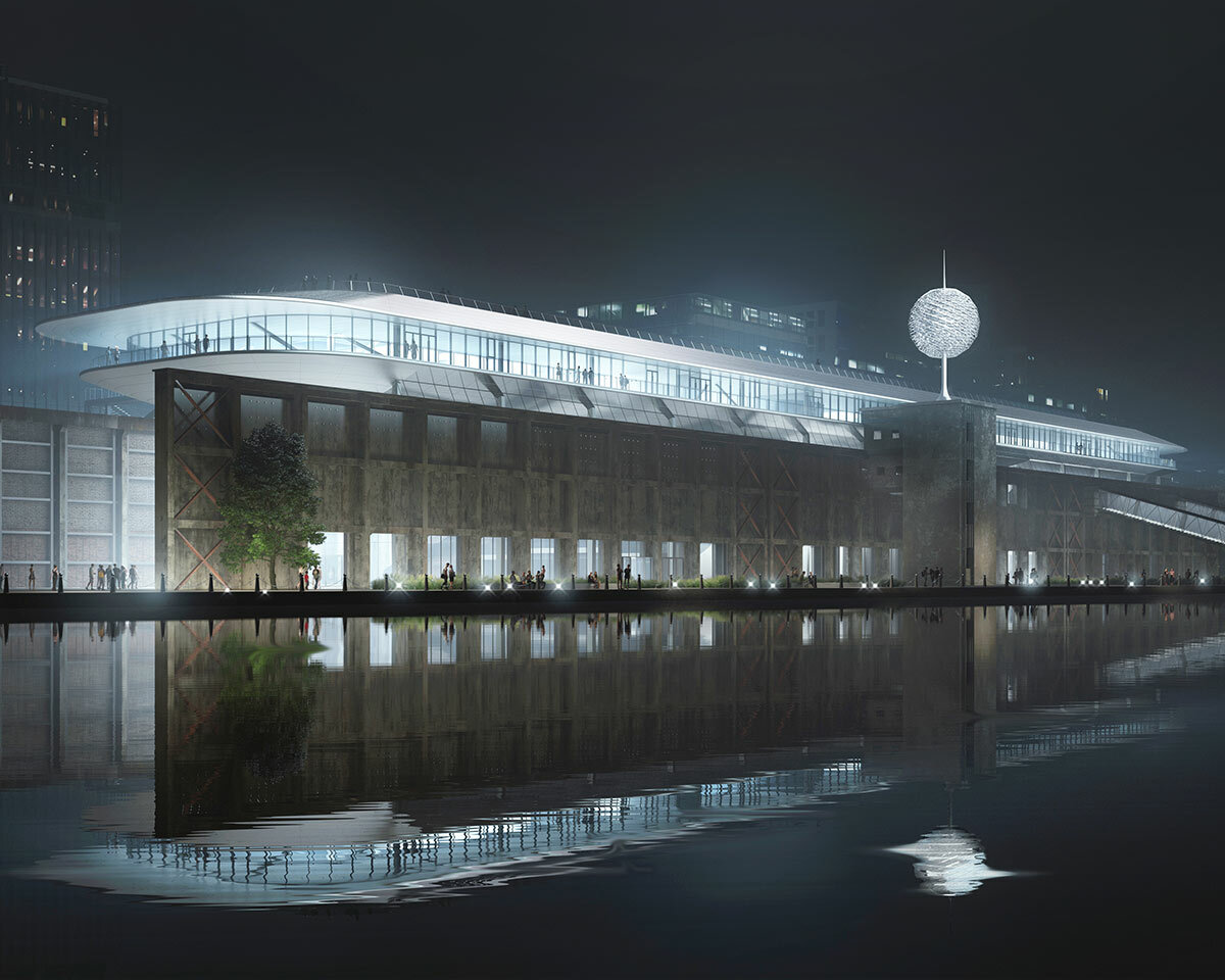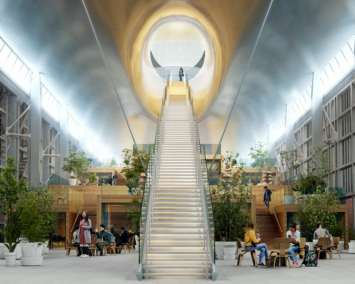 a glass curtain wall will separate the old and new and flood the space with natural light
