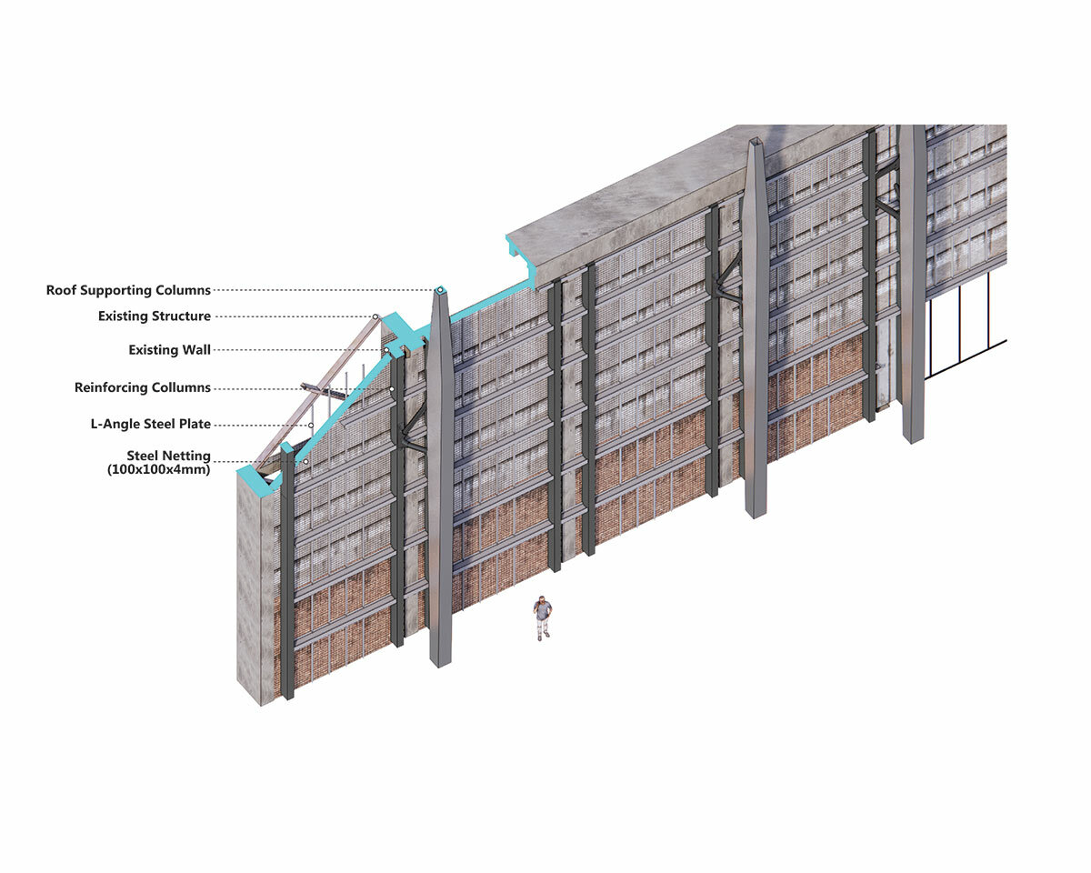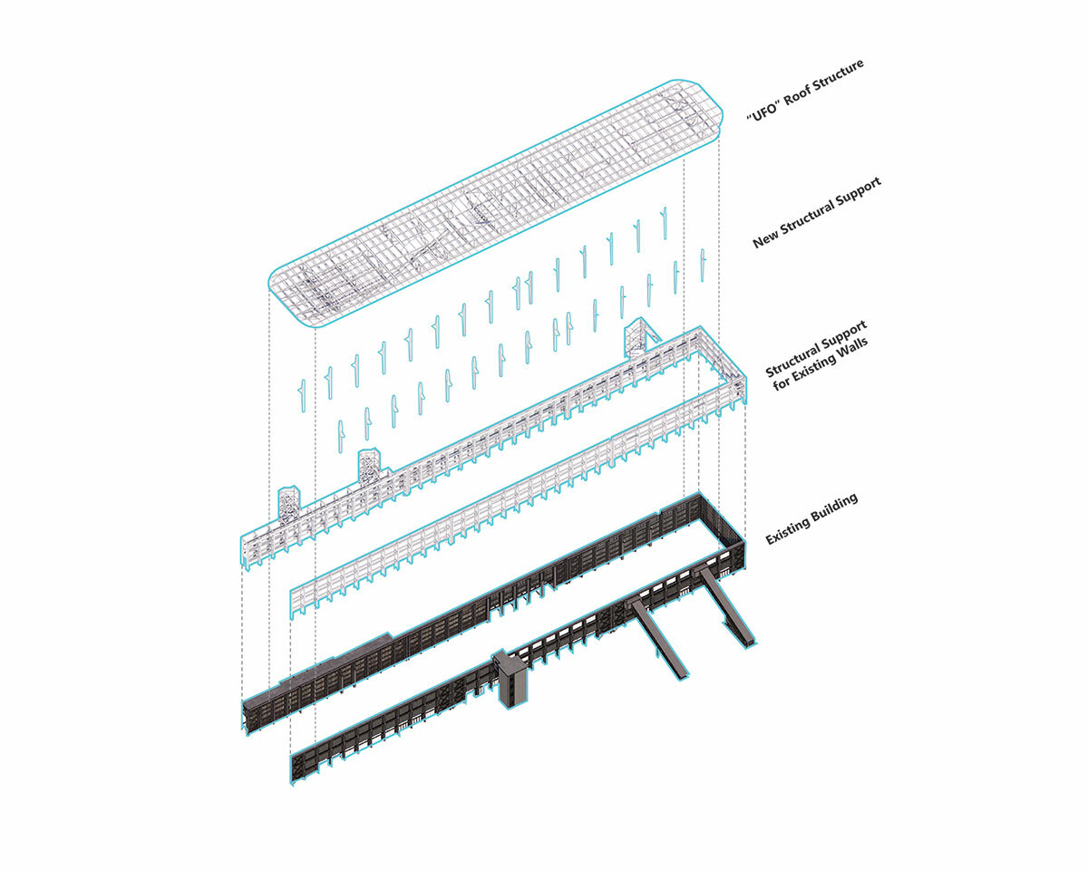 the warehouse’s aging roof will be replaced with an ark-like metal structure