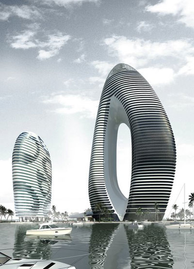 phoenix island by MAD architects is located in the center of sanya city, hainan province, china. it is a man-made island surrounded by the sea. the dimension of  phoenix island is about 1250-meters long and 350-meter wide, connected by a bridge of 395-meter with the main island of sanya.   the site area is about 365,000 sqm and will represent the future of sanya as the international touring and resorts city. the island itself is a vacation land consisting a 7-star hotel, 5 boutique apartments, yacht clubhouse, shopping streets and a habour for internaitonal passenger liners. the total building area of the phoenix island is about 500,000 sqm. construction work is due to finish in 2014.