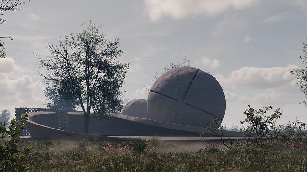 MAKHNO Studio transports us to the realm of the spiritual with KHRAM – The Temple of Three Religions, nestled in Ukraine‘s Poltava region. This architectural marvel is more than just a physical structure; it’s a sacred space designed for prayer, reflection, and meditation amidst nature. From its unique entrance, marked by a three-dimensional figure wall, to its three spherical rooms, KHRAM invites visitors to leave behind the distractions of the outside world and immerse themselves in tranquility. Ultimately, the complex will be close to adherents of different faiths without direct references to any particular religious tradition.