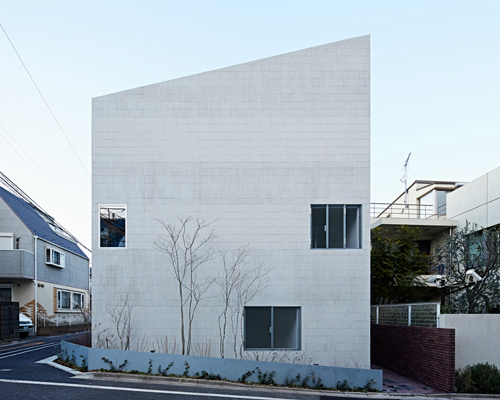 in a residential neighborhood of tokyo, makoto yamaguchi design has constructed an apartment complex made of reinforced concrete. entitled ‘oggi’, the project has been built on historic land where previous residences boasted red brick boundary walls and intimate japanese gardens. reinterpreting these themes, the design team created two approaches to the site with narrow strips of plantation surrounding the three-storey building. the structure itself is envisioned as a large singular property, rather than a typical set of individual apartments.