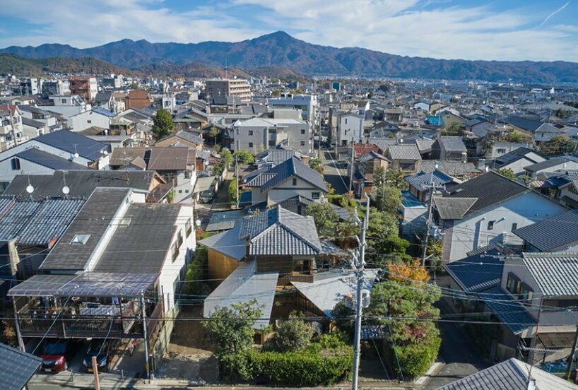 five lean-to structures have been added to a 100-year-old house in kyoto as part of a renovation project by mandai architects. surrounded by a rich garden on a 358 sqm plot, the two-story timber dwelling has been inherited and lived in from generation to generation.