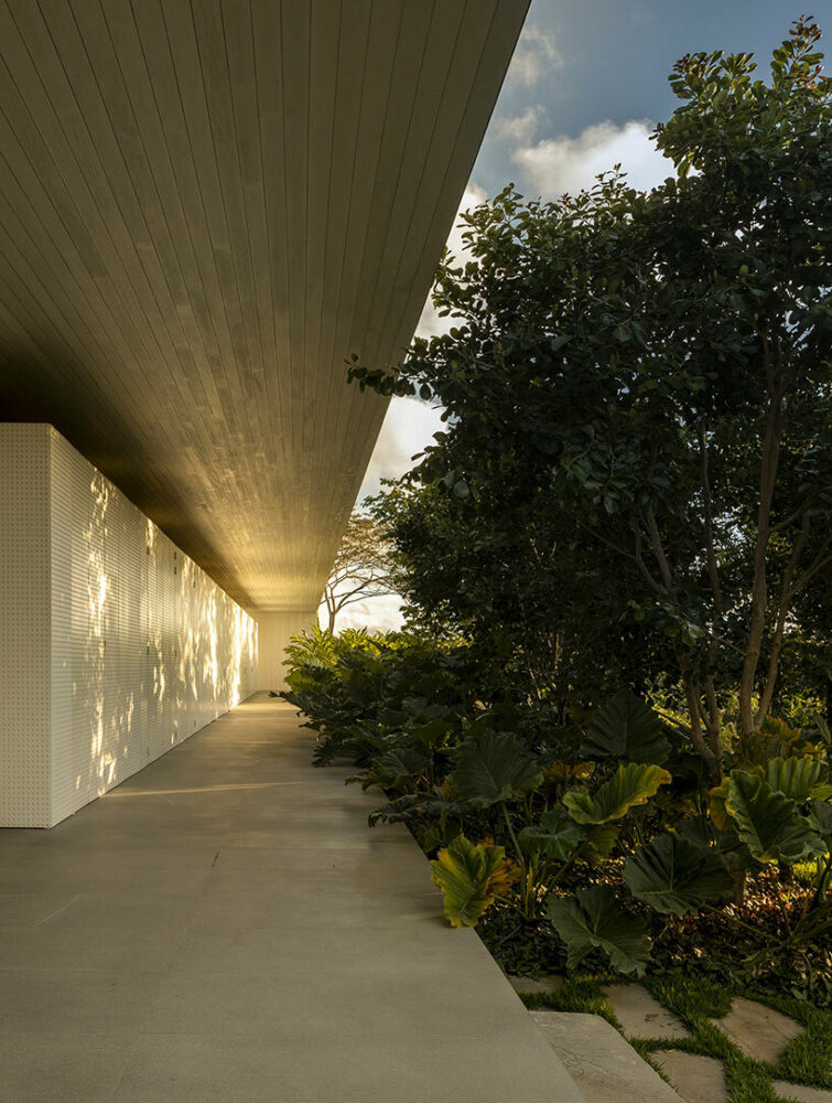 In numerous projects, the windows are recessed into the walls, making the space 100% fluid. There is a constant search for the enlargement of spaces. This favors all passive solutions for climatic comfort in warm climates, as it usually leads to spaces with cross ventilation, which is an important lesson from Brazilian modernism. The use of envelopes with different layers also provides filters and shadows when the afternoon sun hits.