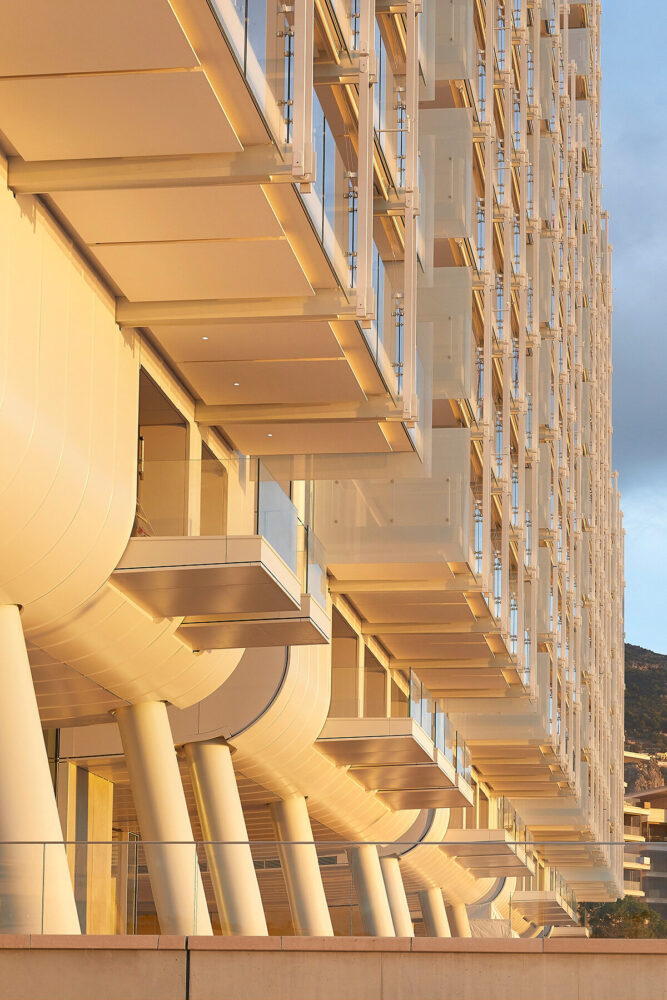 sustainability measures include solar panels, seawater heating systems, and rainwater collection