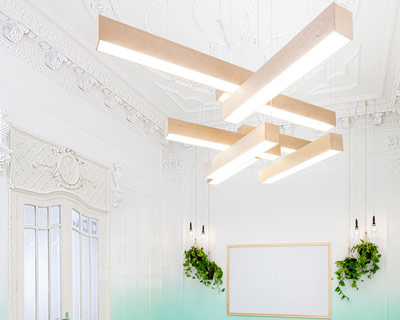 ‘as in the classrooms the students and their teachers are the protagonists, we wanted to limit our intervention to a minimum, without forgetting the freshness and ‘good feeling’ that needed to breathe each space, as well as the importance to equalize the mix between modern decoration and the beauty of the neoclassical architecture of the building.’ says the creative director of masquespacio, ana milena hernández palacios.