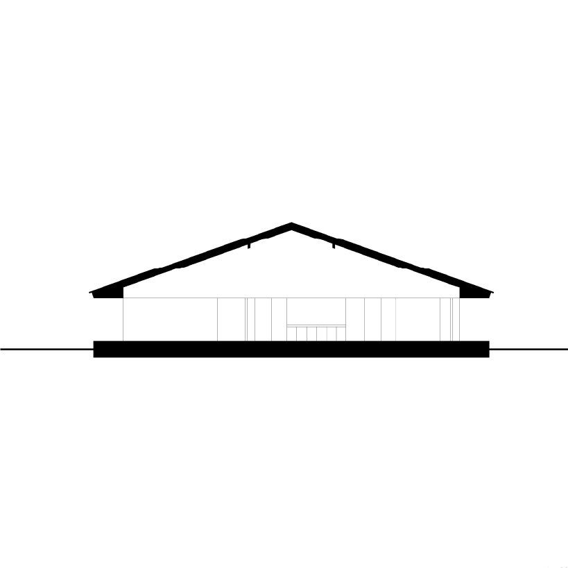 the project sits like a ring placed over the terrain, with its funnel-like roof forming a shaded perimeter walkway and an introverted core.