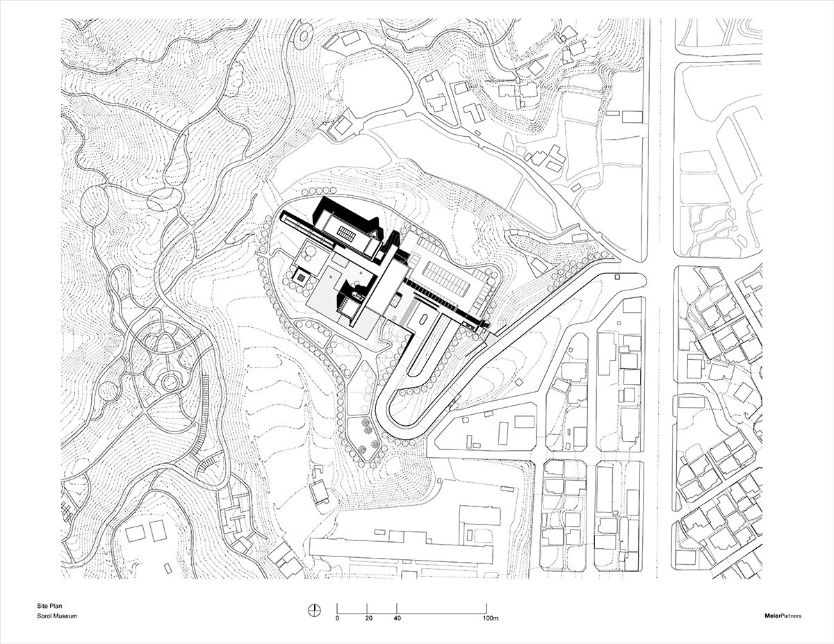 a continuation of the existing rock formations, the hotel is articulated as a series of stepped horizontal planes, courtyards, and gardens.