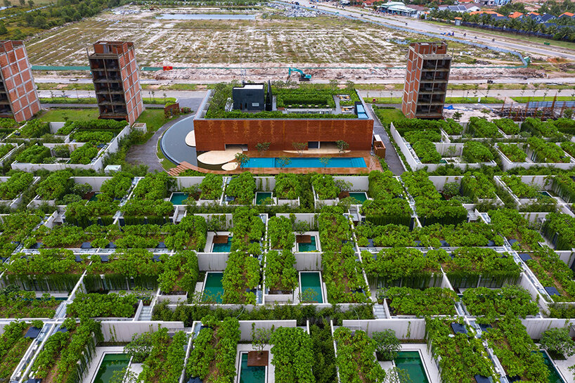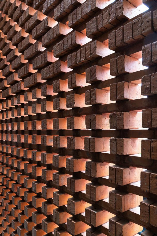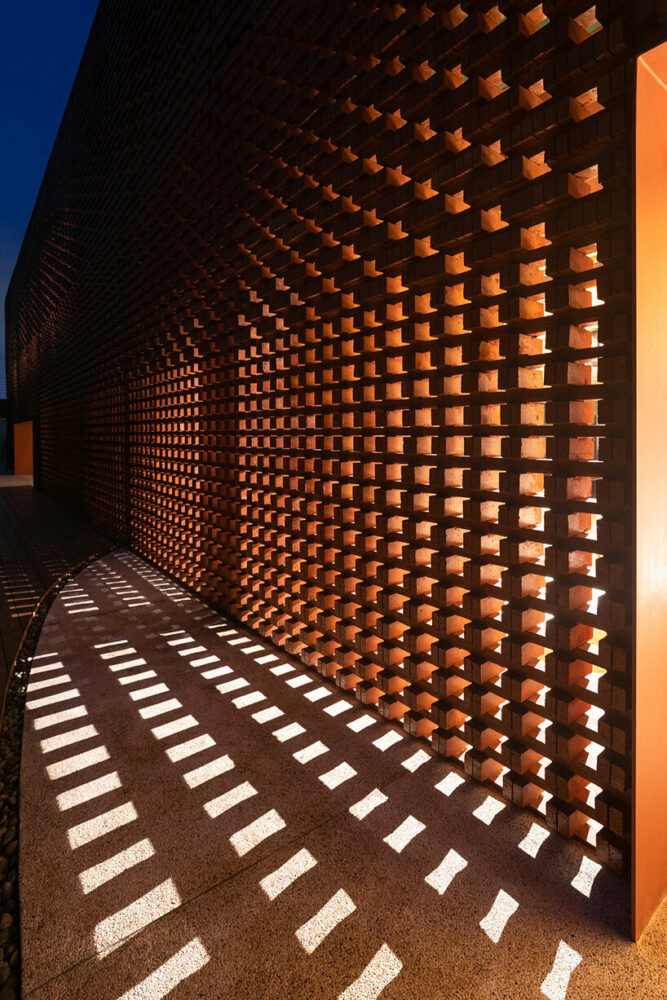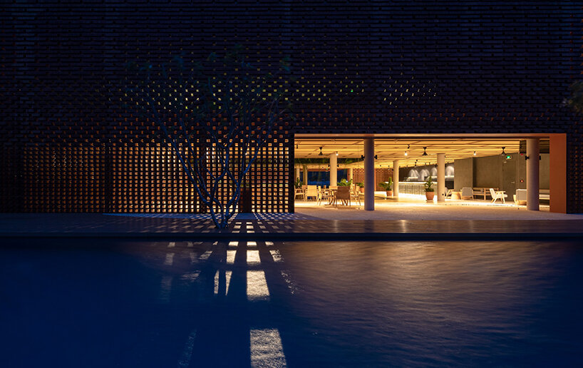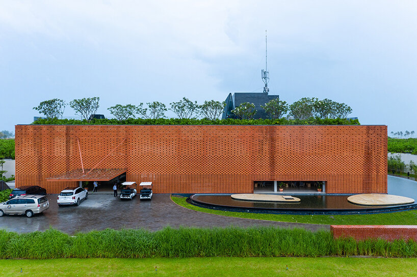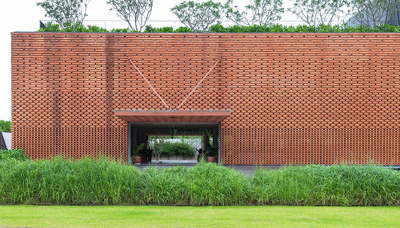 On the Vietnamese island of Phu Quoc, the Wyndham Club House emerges as a new hospitality addition by MIA Design Studio. Combining modern and traditional qualities, the structure features a bold, bare brick exterior sporting various patterns that create captivating light and shadow plays throughout the day. The resulting effect evokes a lantern-like quality that ‘exudes the beauty of craftsmanship in the meticulousness and precision of the local mason,’ writes the studio.