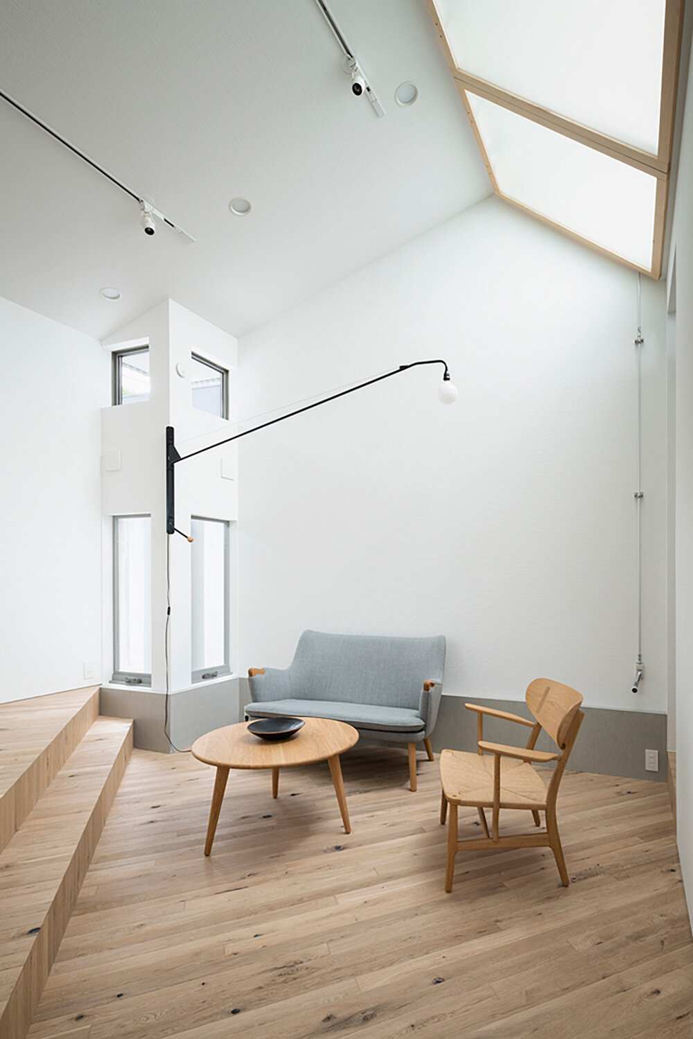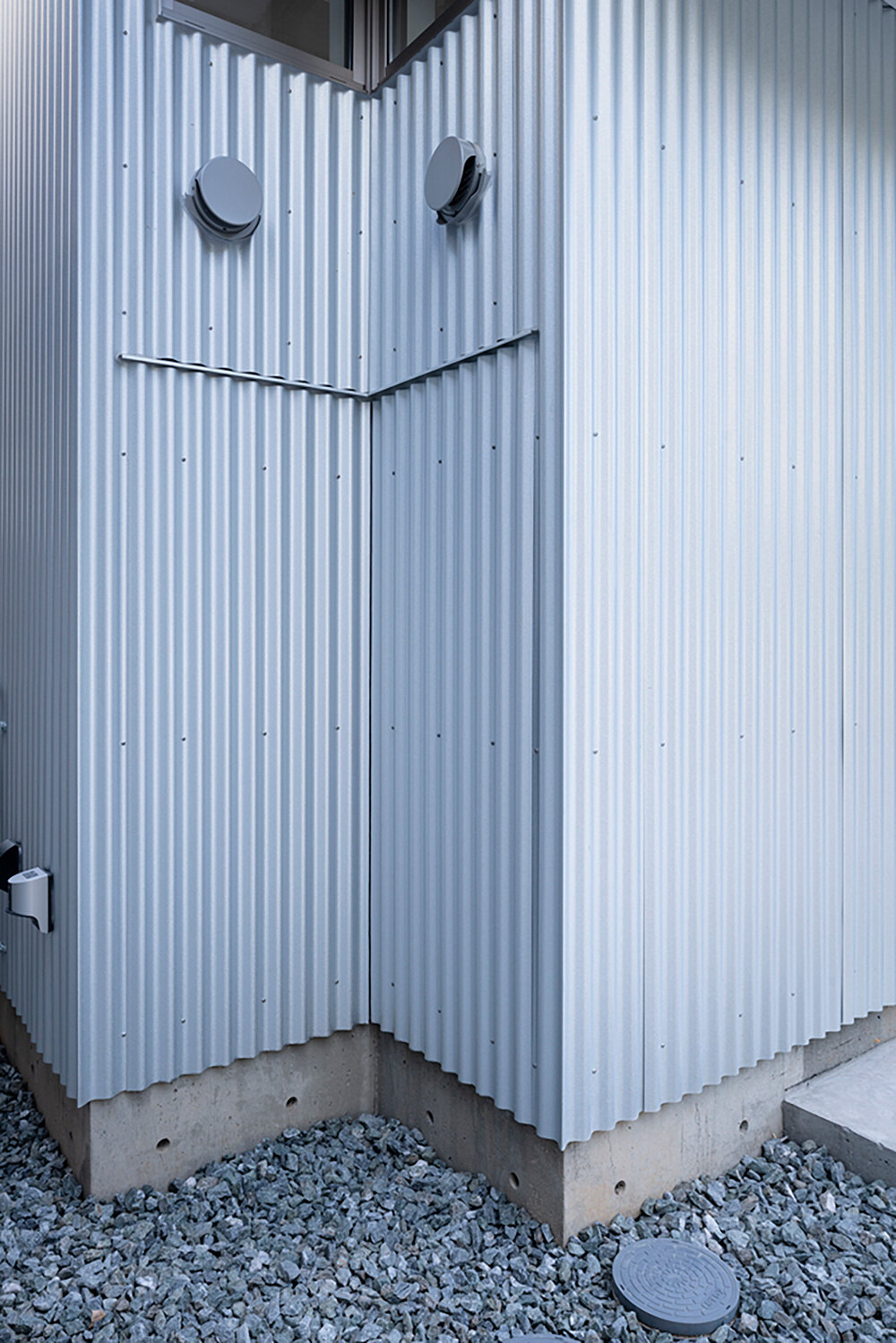 Rather than having windows on the walls, the openings are concentrated at the four corners of the notched perimeter. However, ventilation is ensured through a clever design using vertical sliding windows and a gouged shape, creating a ventilation ring. The space now exudes a serene ambiance, featuring a large wall that allows the wind to flow through while reflecting light. By omitting windows, the facade does away with unnecessary elements that may seem unsettling from the outside. In a Japanese cityscape dominated by closed curtains, the organic membrane and its exterior design propose a fresh perspective on what a ‘house’ can be.