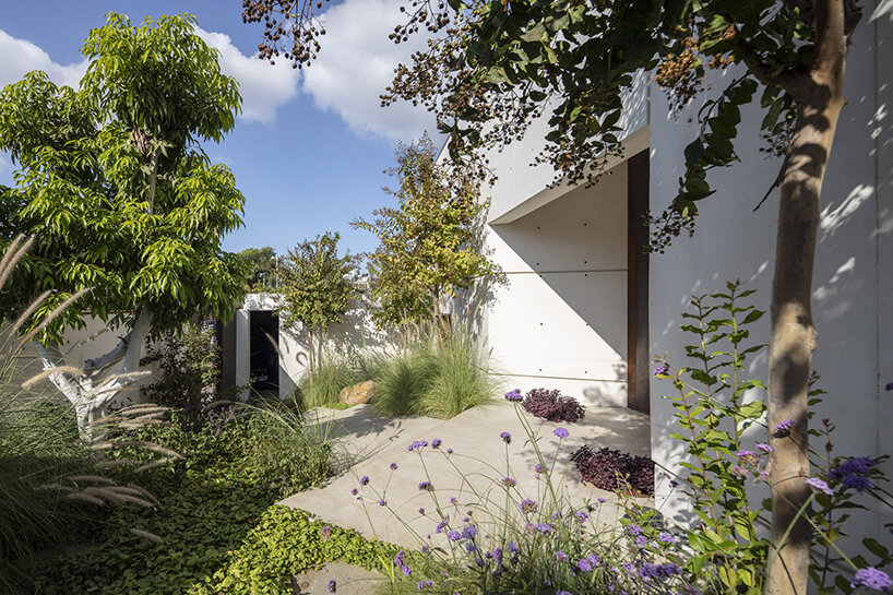lush vegetation and an off-white concrete façade buffer this tel aviv house