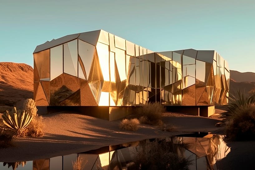 the facade reflects the encompassing environment, blurring boundaries between nature and structure