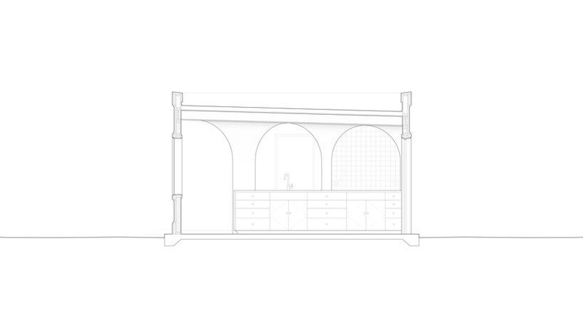 kitchen with view of the bedroom through vaulted form | all images by Knowhow Shop
