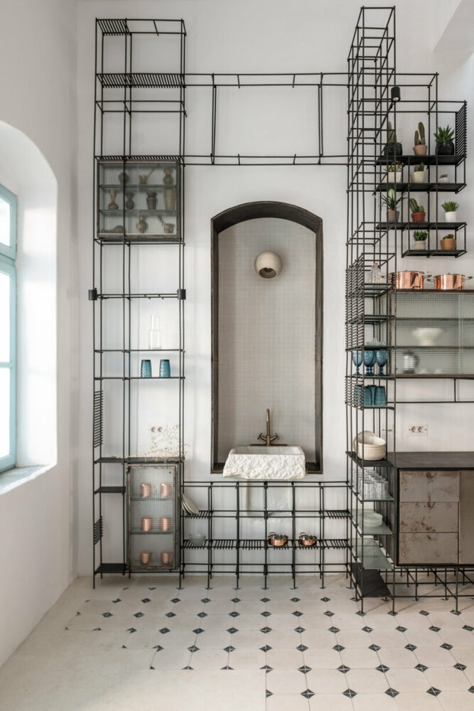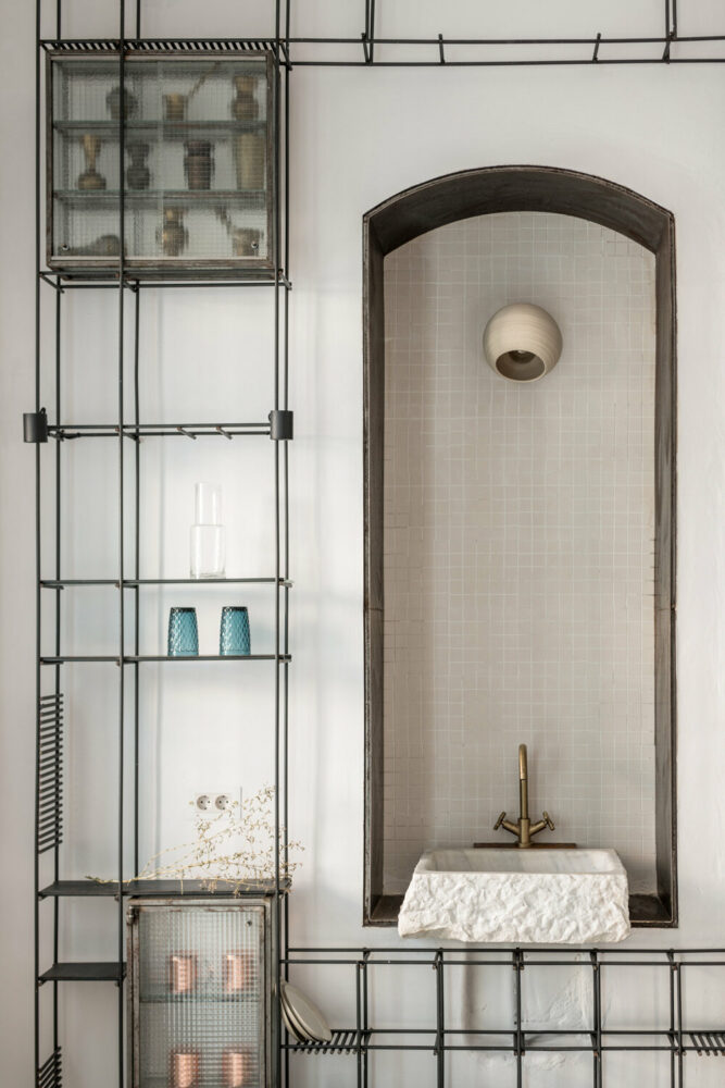 MOLD Architects took on the sweeping makeover of a century-old coffee house into a summer residence in the picturesque Chora of the Greek island Serifos. The historic two-story building dating back to the 1920s features robust load-bearing stonewalls reflecting the island’s rich past. The team sought to breathe new life into this time-worn structure with a minimal yet playful design, all the while preserving its historical significance. The ground floor, once the bustling main hall, has now metamorphosed into a spacious open living area with a delicate industrial design that adds to the house’s permeable and inviting character.