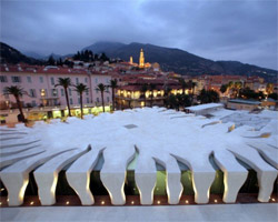 the concrete filigree skin creates an immaterial envelope of dappled light and reframes the ocean and air image © lafarge library  / charles plumey faye