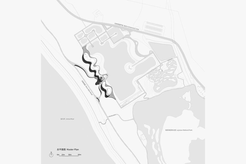 MUDA-architects mimics lujiatan wetland park's meandering rivers with new project