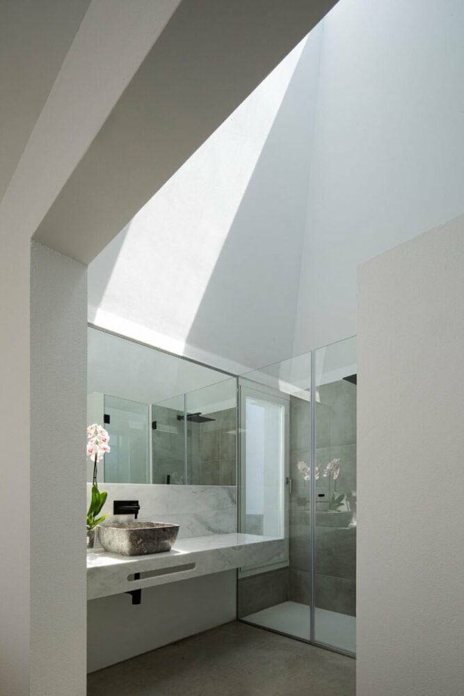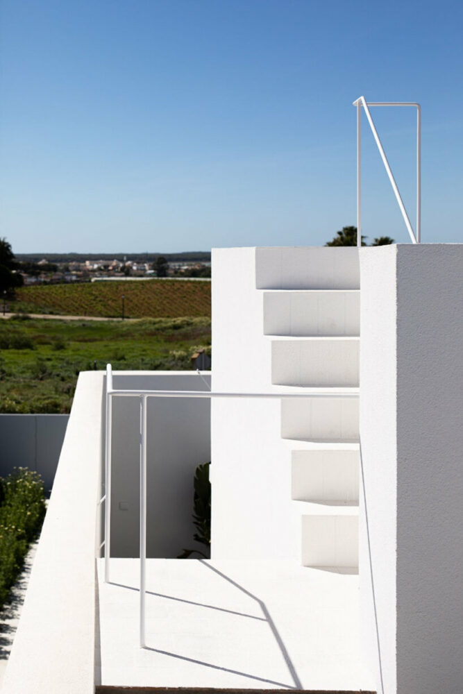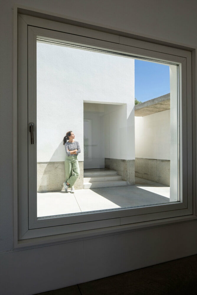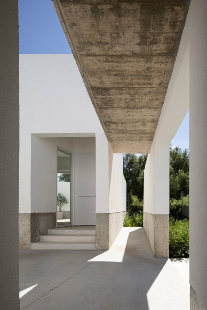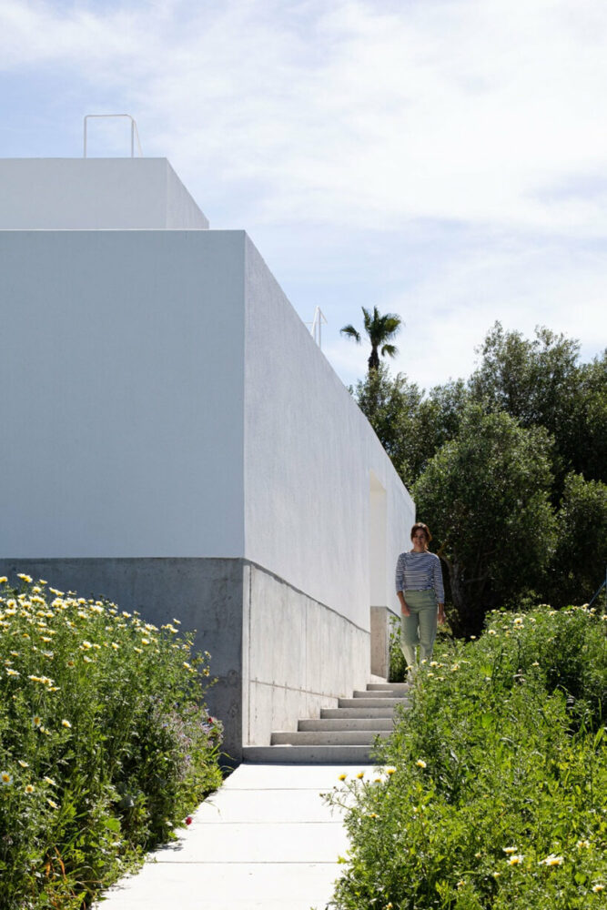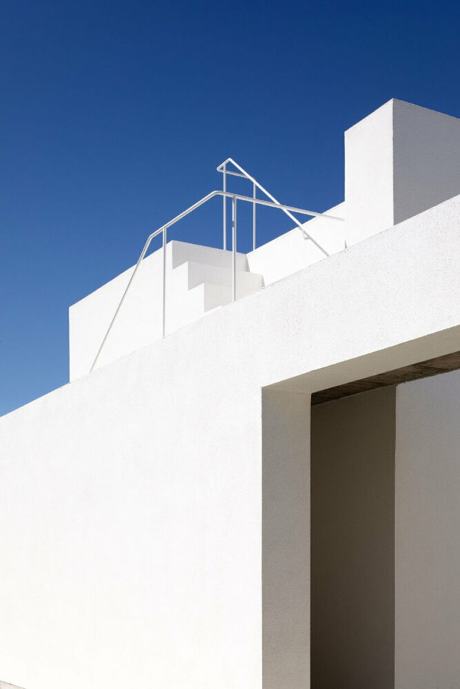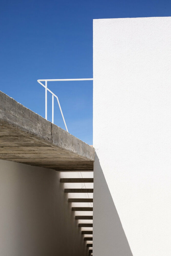 the project sits like a ring placed over the terrain, with its funnel-like roof forming a shaded perimeter walkway and an introverted core.