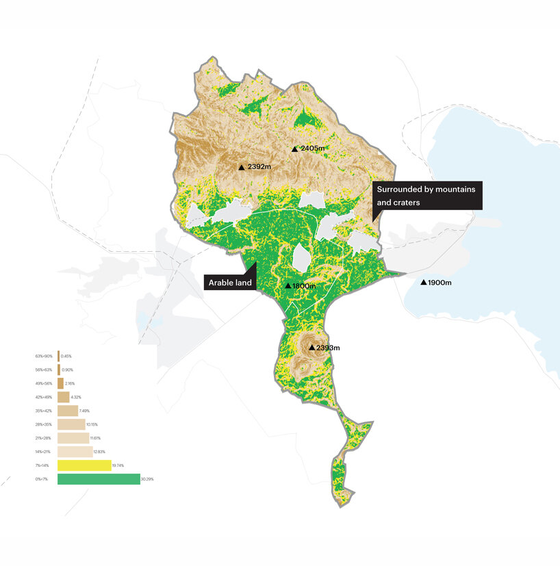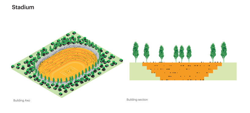 a continuation of the existing rock formations, the hotel is articulated as a series of stepped horizontal planes, courtyards, and gardens.