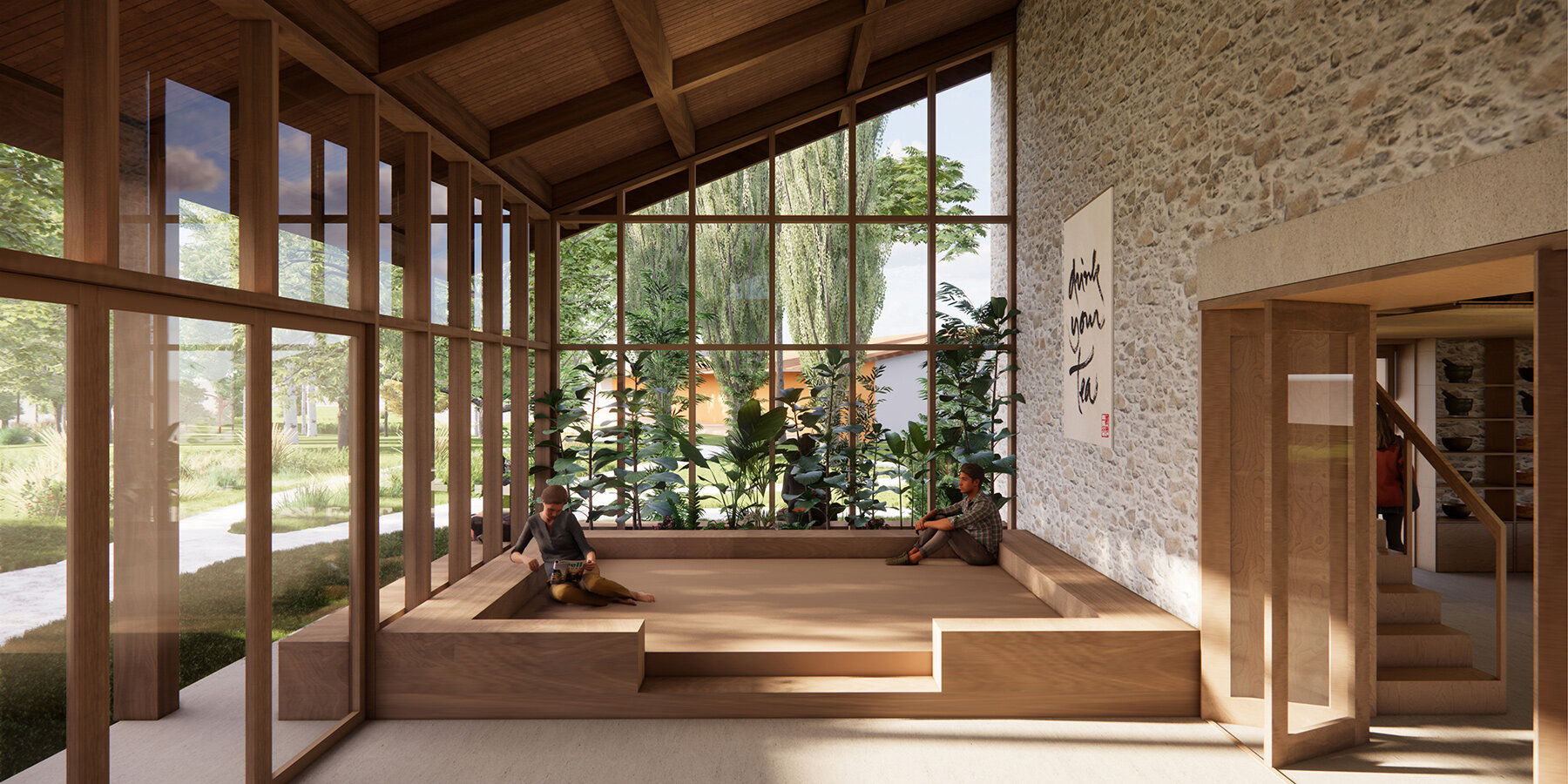The collaboration emerged from extended stays by the design team, who joined daily routines in both hamlets to understand how visitors and monastics experience the site. This immersion shaped an architectural direction grounded in serene spatial organization, timber construction, and attention to seasonal rhythms.