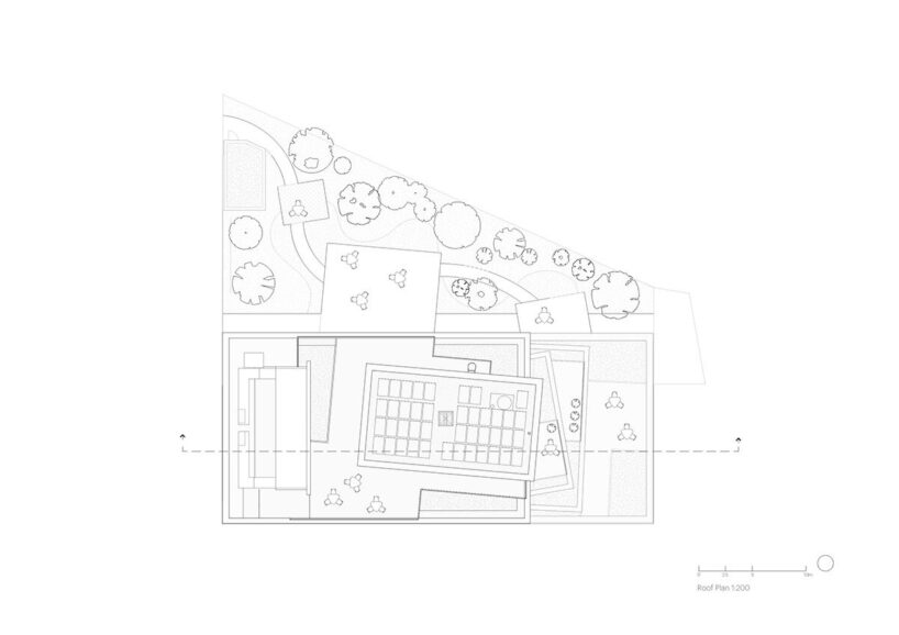 In keeping with MVRDV’s commitment to sustainability, MONACO’s facade employs a circular approach to materials. The work section is clad in clinker brick reclaimed from demolitions within the region. The resulting patchwork-style brickwork showcases the material’s origins from multiple older buildings. Meanwhile, the play section features shingles in shades of green and lilac, seventy percent of which are made by Pretty Plastic, a company specializing in facades made from recycled plastic waste. This marks the first time Pretty Plastic will be used on a facade in Germany, requiring the team to conduct extensive research to meet local building regulations.