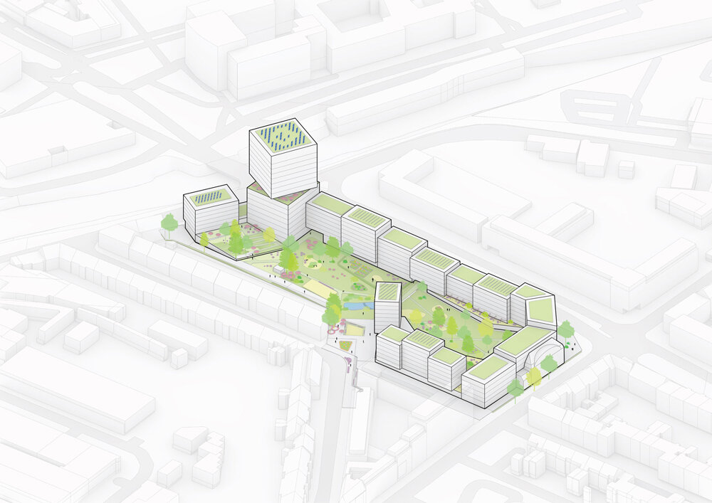 Grüne Mitte in Düsseldorf, all images © MVRDV