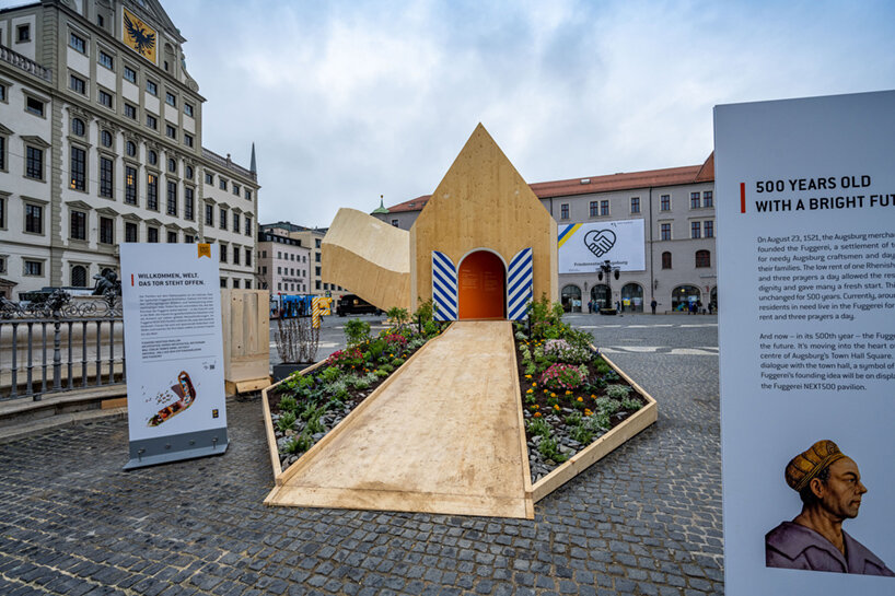 While the social housing complex has stood in Augsburg since 1521, the 500th anniversary was celebrated last August 23rd, 2021 — exactly 500 years after its founding. The completion of the pavilion marks the beginning of the five weeks of programming. See designboom’s previous coverage here.