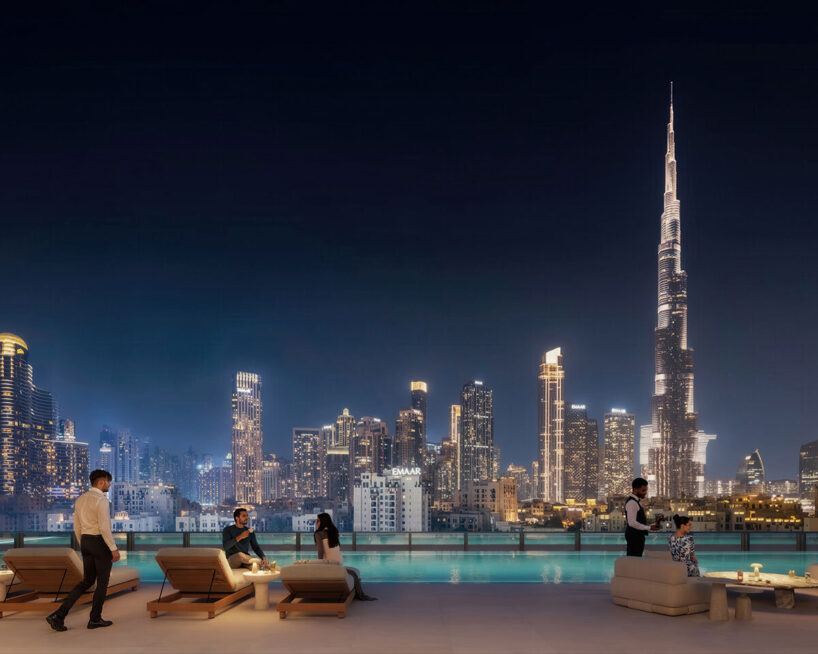 Above the Sky Lounge, the architects plan seven floors of larger ‘sky villas’ within the upper section of the tower. These four- to six-bedroom homes open onto expanded outdoor terraces and long views across Downtown Dubai. The stacking of programs creates a clear vertical order which moves from public and shared amenities toward increasingly private living environments as the building rises.