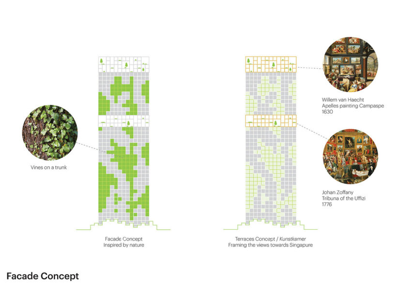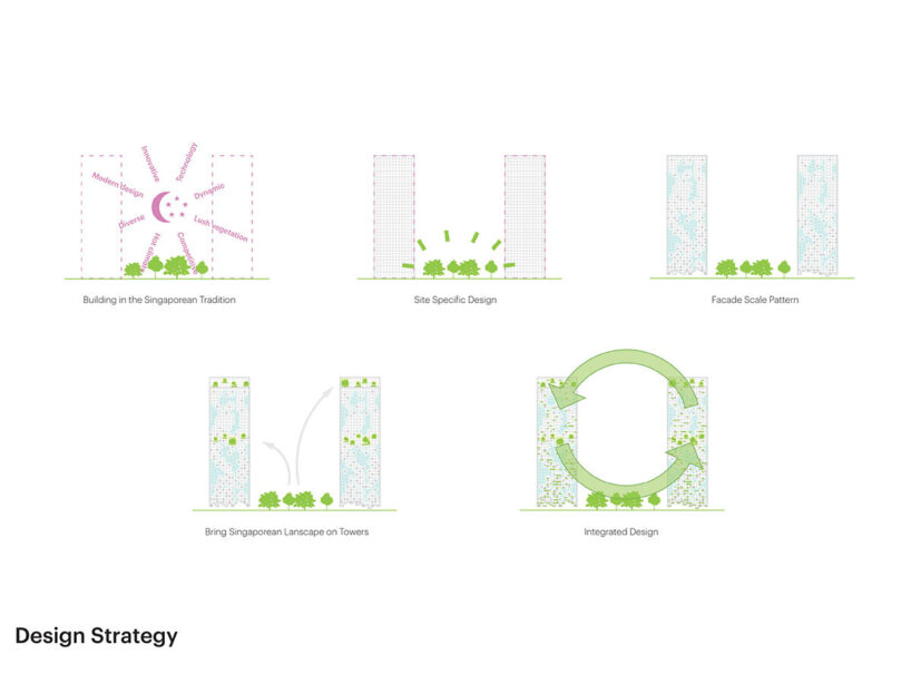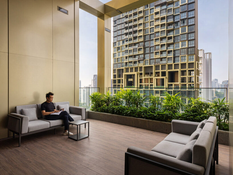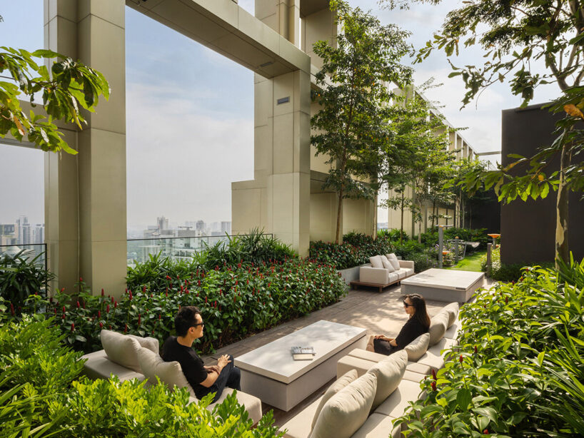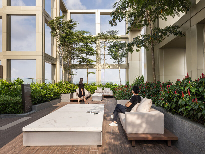 the project sits like a ring placed over the terrain, with its funnel-like roof forming a shaded perimeter walkway and an introverted core.
