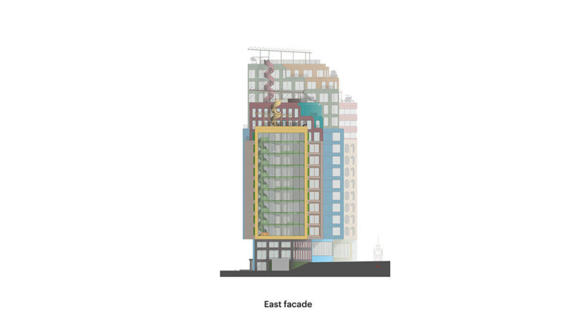 MVRDV has received approval to build Schieblocks, a 47,000-square-meter office complex set to become the largest private new office building currently under construction in the Netherlands. Rising 61 meters alongside the central railway, the project stacks 11 colorful blocks whose facades combine brick constructed from recycled material and Building Integrated Photovoltaic panels. Drawing inspiration from Donald Judd’s iconic furniture series, the bold composition forms a dynamic ‘slice’ of Rotterdam that brings color, texture, and material innovation into a vertically layered urban ensemble.