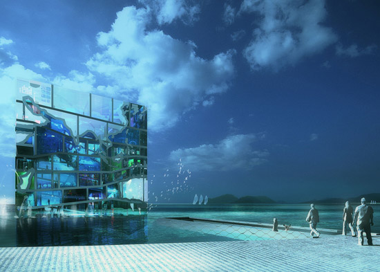 a continuation of the existing rock formations, the hotel is articulated as a series of stepped horizontal planes, courtyards, and gardens.
