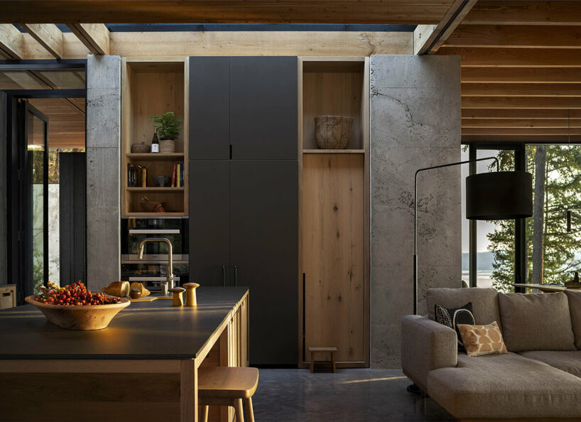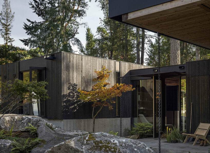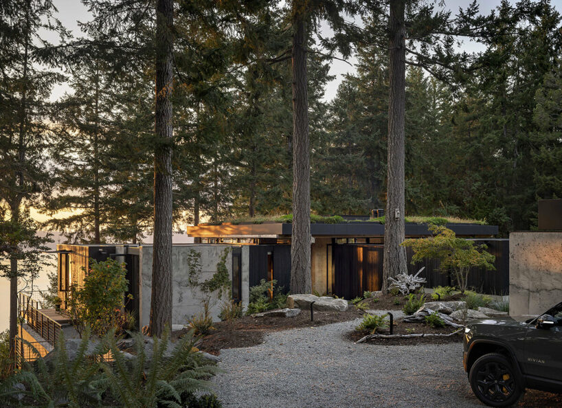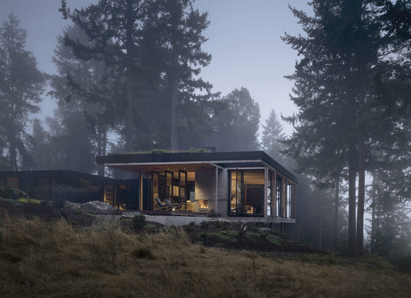 the completion of the house restores the land, with the forest and meadow embracing the structure
