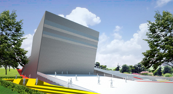nabito architects: theater complex, frosinone, italy ramps of stairs run alongside the complex