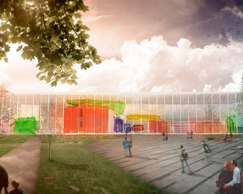 to celebrate its 100th anniversary (in 2019), the bauhaus dessau foundation has announced an international competition for the construction of a bauhaus museum. for the first time, the outstanding collection will be presented to the public in a permanent setting. spanish architecture firm nacho gias’ entry is a friction between two of the school’s most distinct trains of thought, wassily kandinski and mies van der rohe.