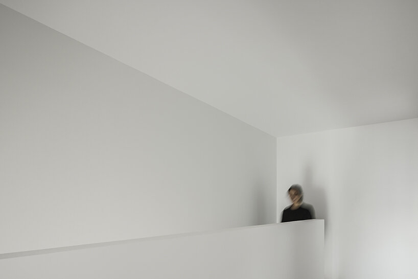 Thanks to recesses created by the volumetric arrangement, residents can enjoy a series of corners, shadows, and points of intimacy throughout the day. Facing the apartment units is a central pool built like an underground cube and delimited by a white wall that functions as a reflective screen of light at night, echoing the scenery of a sea horizon.