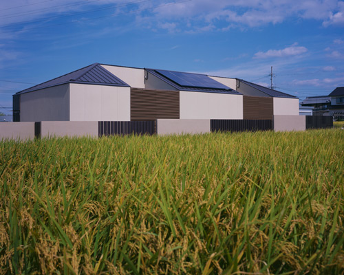naoko horibe of horibe associates architect’s office has completed ‘house in mayu’ in osaka, an integrated design that emerges organically from the region’s paddy fields. due to its exposed nature, the brief called for design which provided the security and privacy expected of a residential property. consequently, façades presented to the structure’s surroundings contain very few openings.