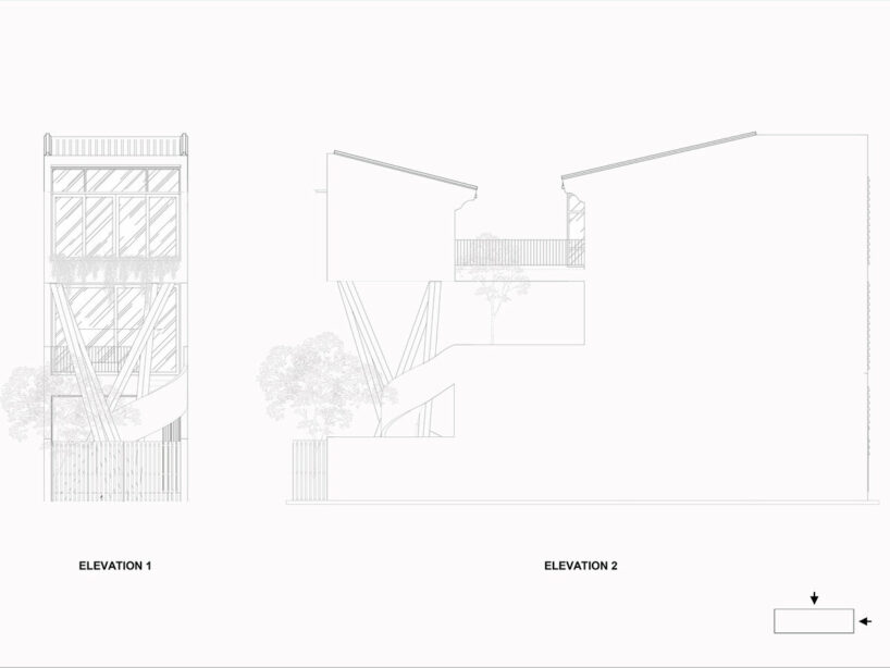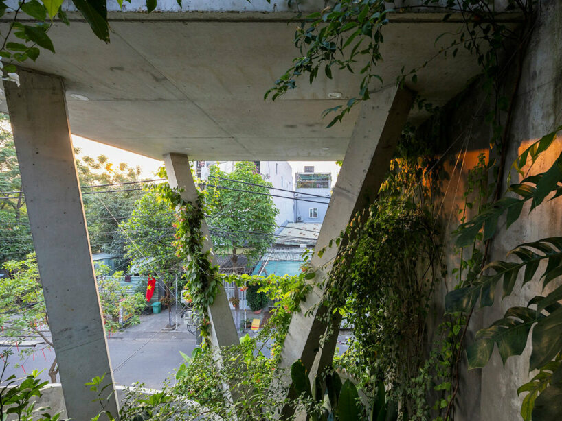 steel-concrete columns mimic a tree’s structure, reinforcing the nature-inspired designnest house ho khue